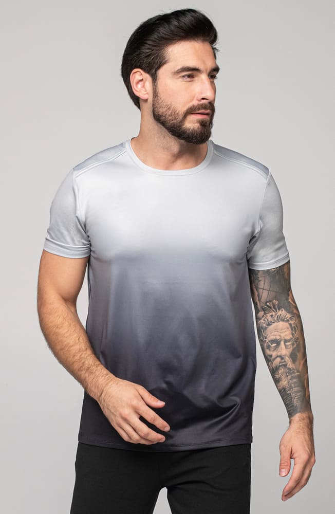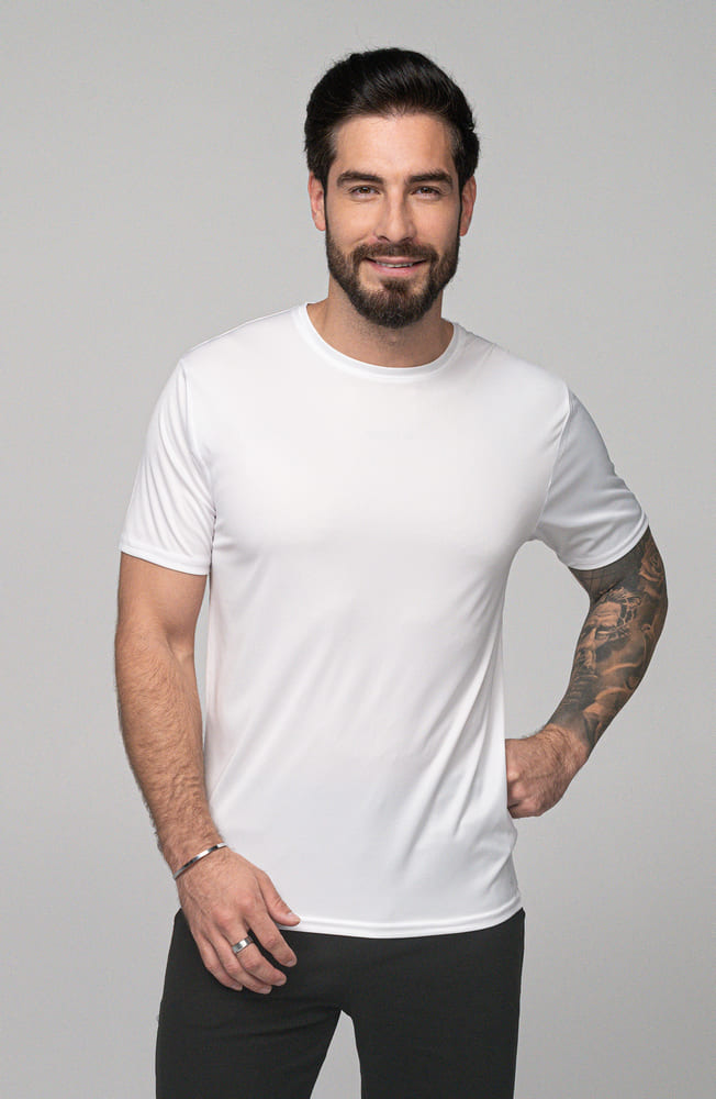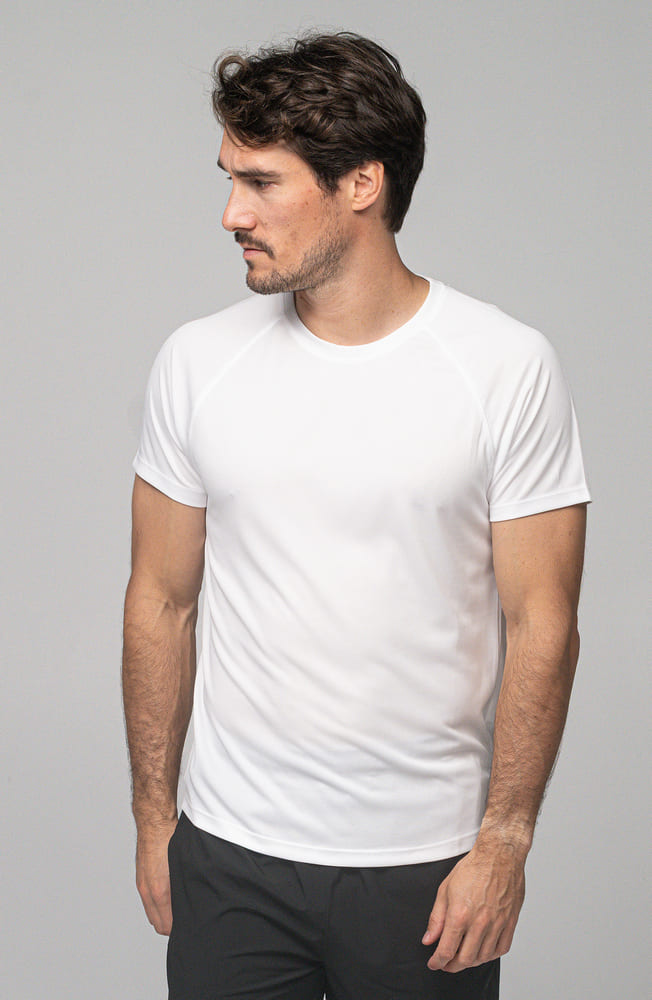 - Sportowy t-shirt męski wykonany z gładkiego materiału typu interlock.
