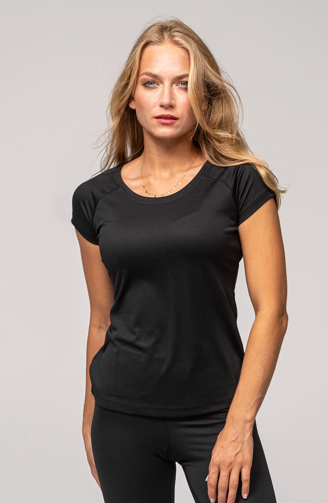 - Sportowy t-shirt damski z raglanowymi rękawkami.
