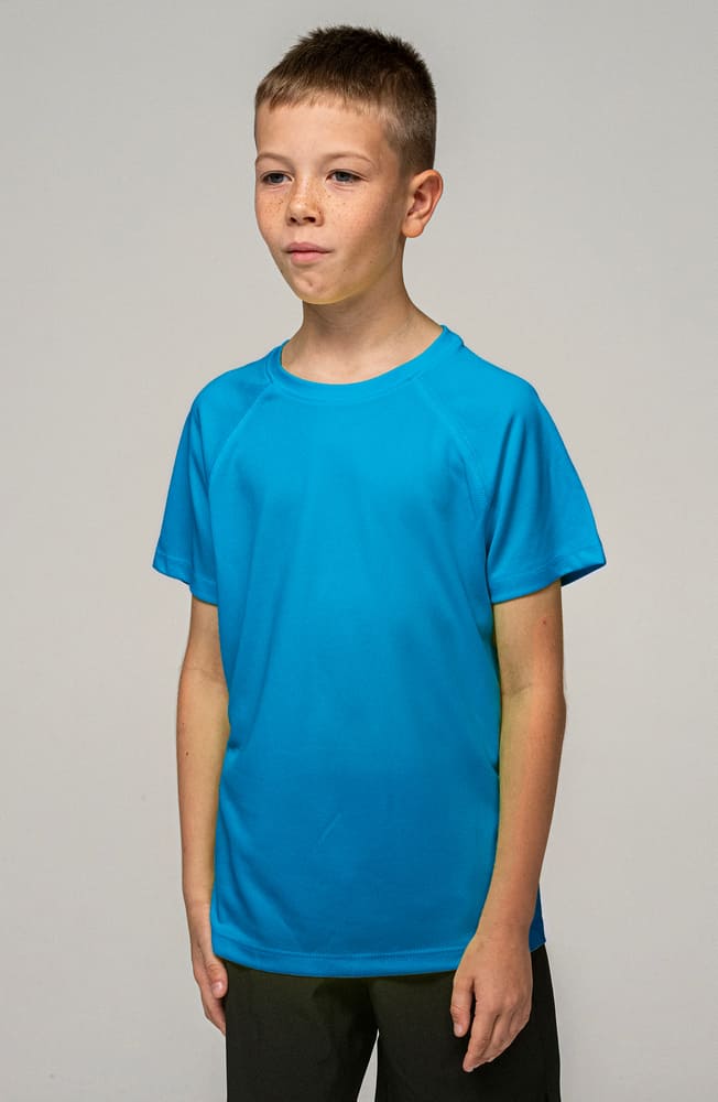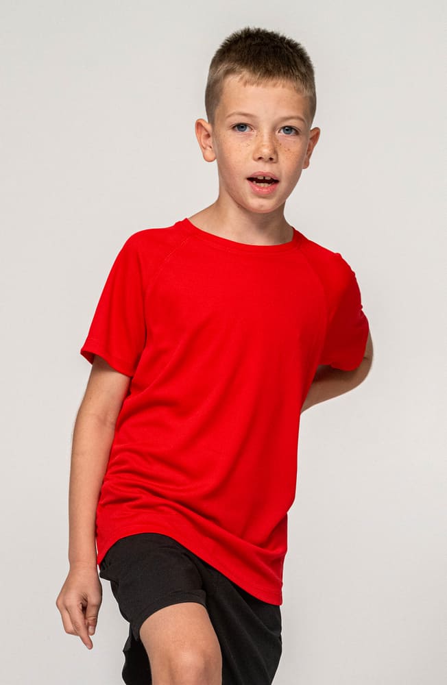 - Sportowy t-shirt dziecięcy z raglanowymi rękawkami.