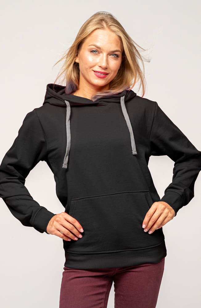 - Bluza unisex z kapturem wykonana z miękkiej dzianiny.