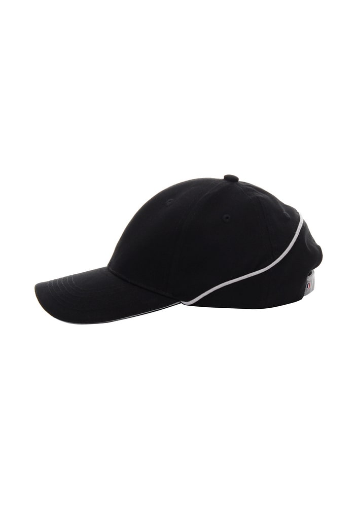 - Kontrastowy piping w tylnej części czapki.