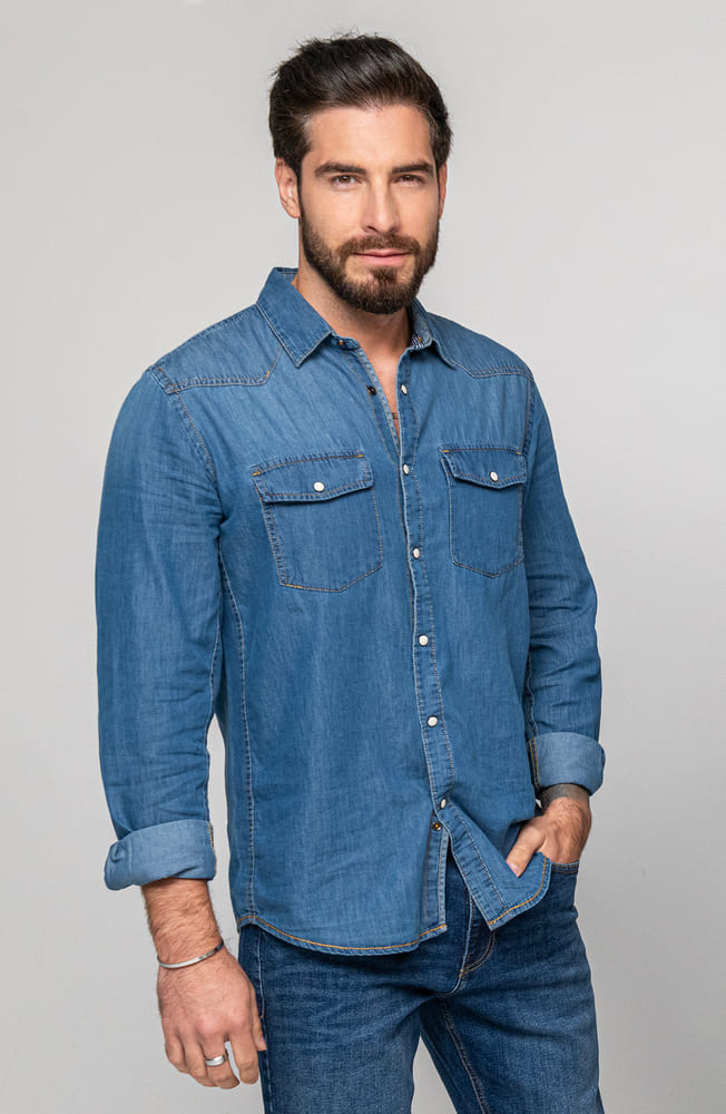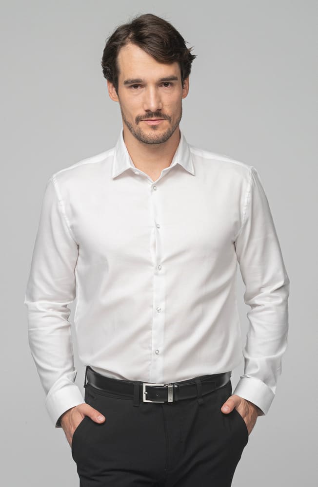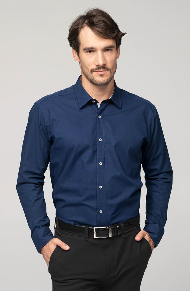 - Męska koszula wykonana z wysokiej jakości dwukolorowej tkaniny w pepitke.