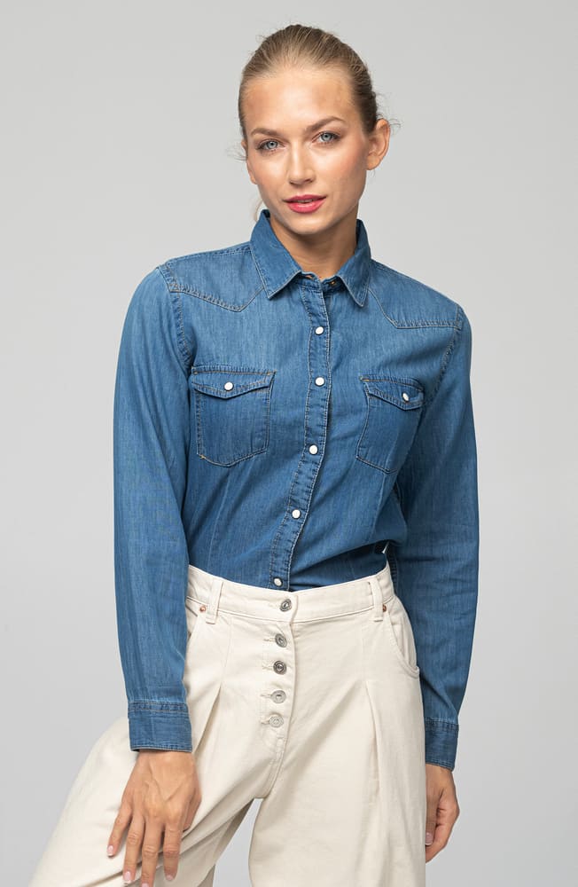 - Damska koszula wykonana z wysokiej jakości dwukolorowej tkaniny w pepitke.
