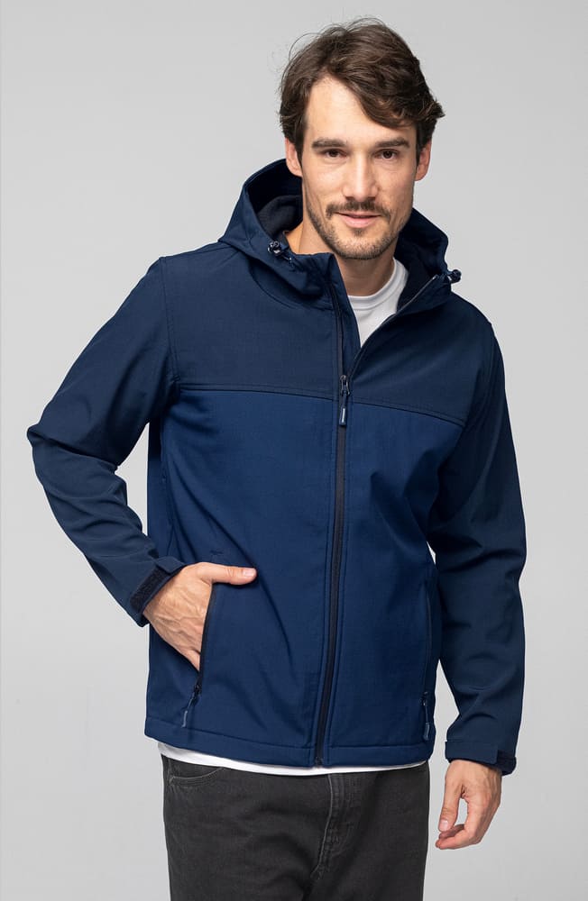 - Męska dwukolorowa oddychająca kurtka z kapturem z membraną.