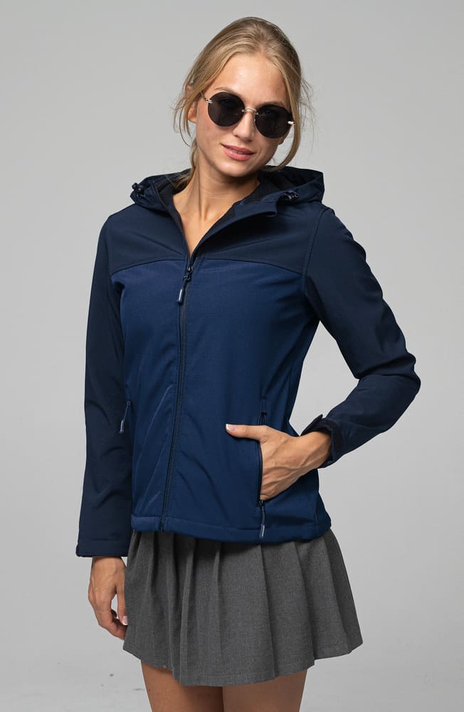 - Damska dwukolorowa oddychająca kurtka z kapturem z membraną.
